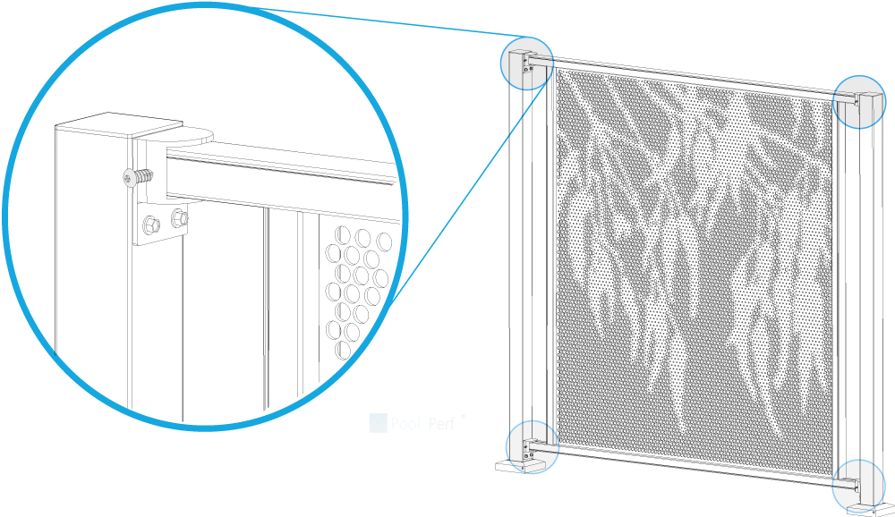 Pool Perf can easily be installed with standard Fish Mouth Shroud brackets. They fit straight onto the Pool Perf frame and allow frame to be cut to fit onsite.